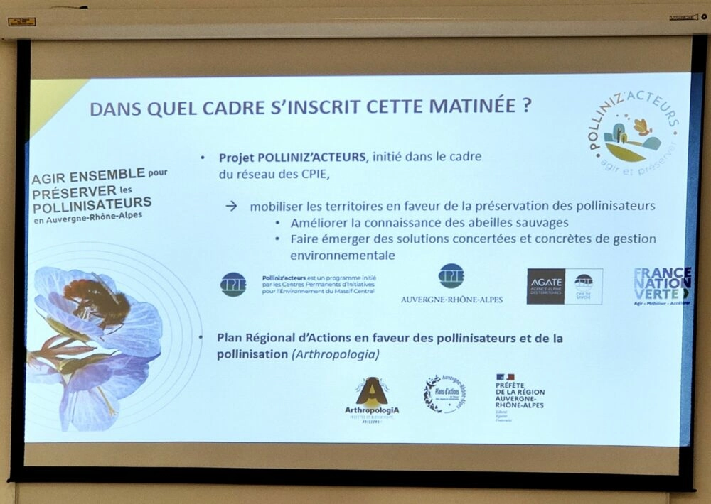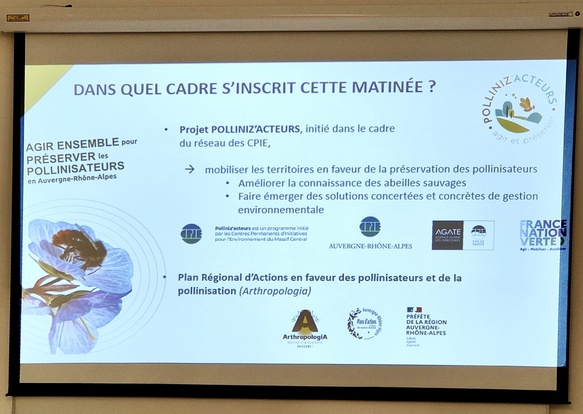 • Frederic Vyghen, chargé de mission naturaliste (ARTHROPOLOGIA), a ouvert la matinée avec une présentation des principaux pollinisateurs et des enjeux de les préserver.